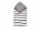 De babywrapper is een zacht en warm wikkeldeken gemaakt uit hoogwaardig jersey katoen met een kap. Het wikkeldeken heeft aan de ene zijde trendy donkerblauwe strepen en is jersey grijs aan de binnenzijde. Als mooi extra detail heeft het dekentje een zilveren print met het Natti & Co-logo.